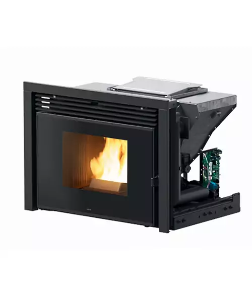 Insert à granulés encastrable de largeur 70 cm, à ventilation forcée, avec structure étanche et chambre de combustion en fonte. Parfaits pour remplacer les foyers existants, qui résultent peu efficaces ou qui ne fonctionnent plus, mais idéal également pour de nouvelles installations, parce que il est rapide et simple à installer, sans entreprendre de longs travaux chez soi.